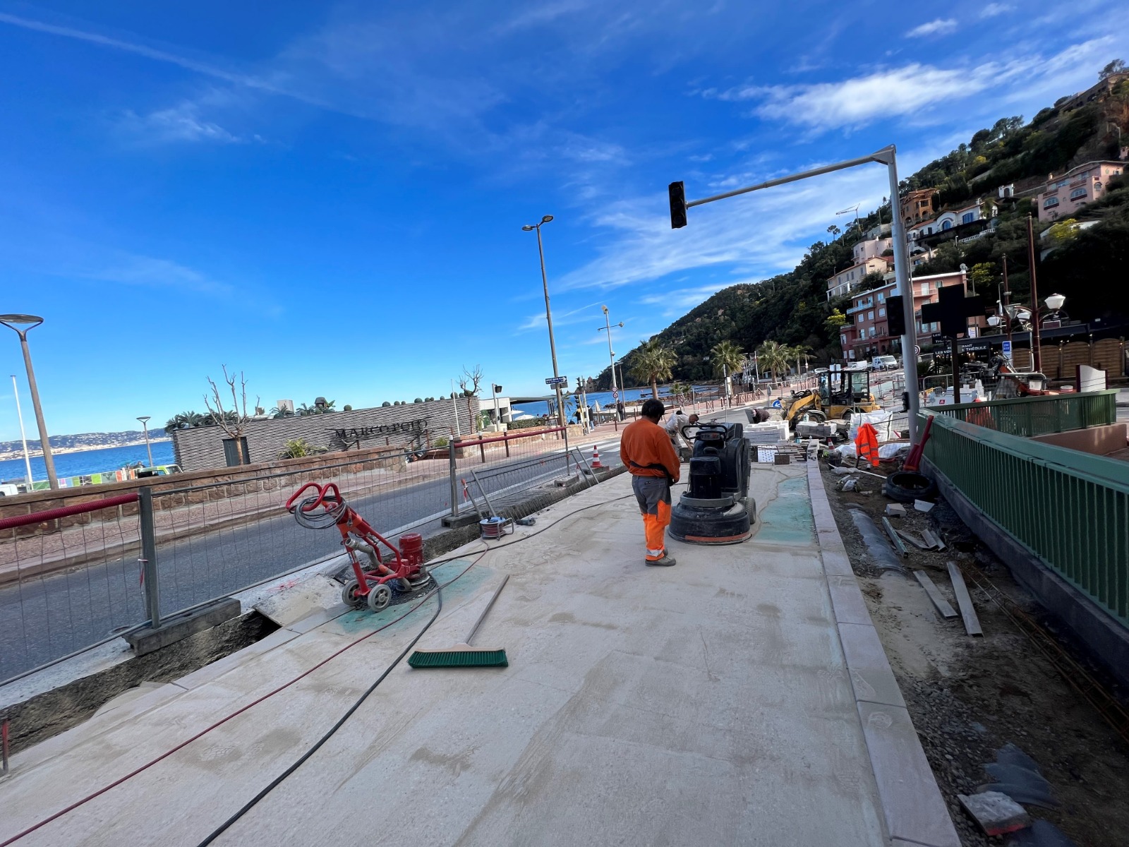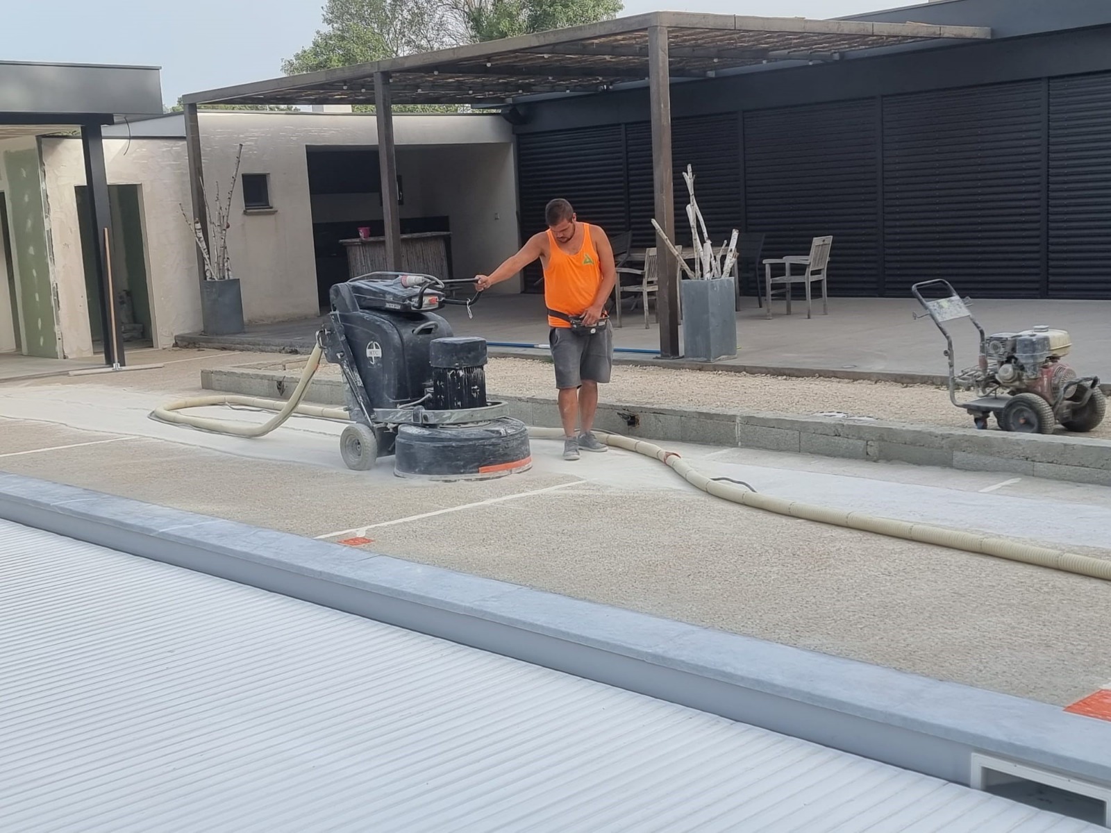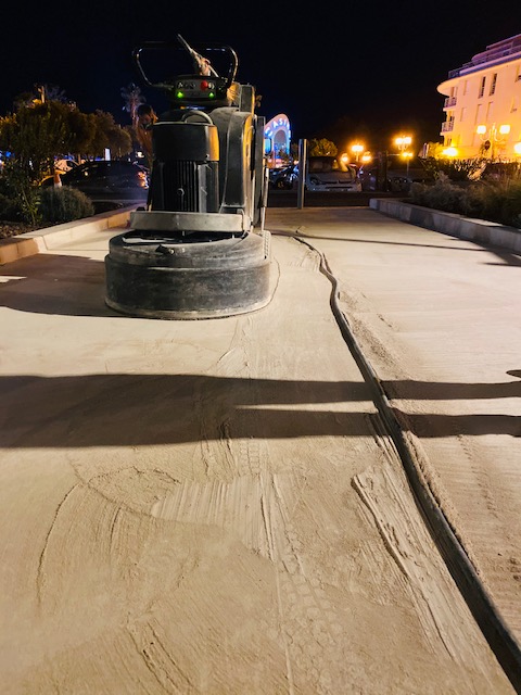 Processus de pose du béton bouchardé.