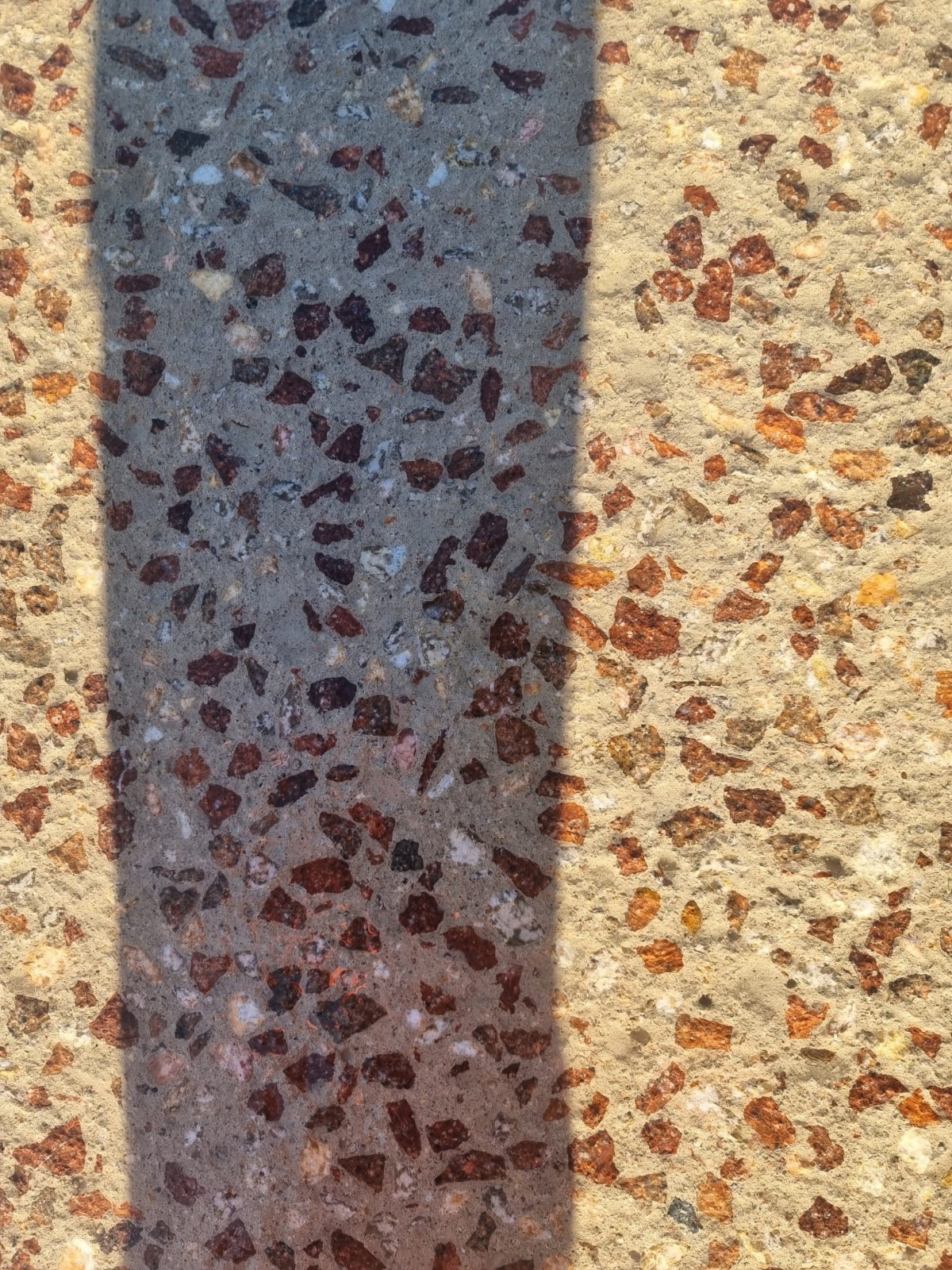 Le béton bouchardé est antidérapant. La texture granuleuse créée par le bouchardage améliore l’adhérence.