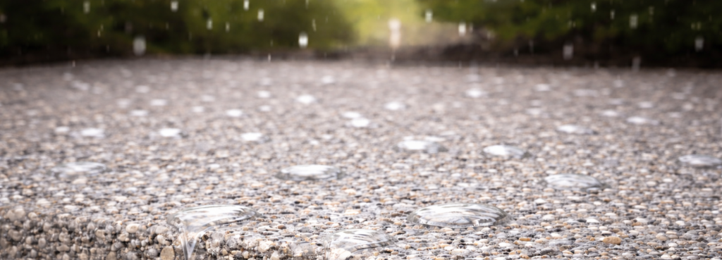 Le béton drainant permet à l’eau de pluie de s’infiltrer dans le sols, réduisant les risques de flaques et d’inondations